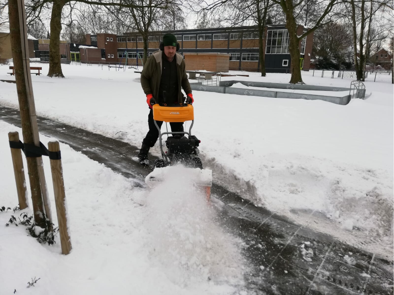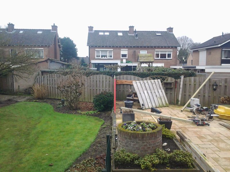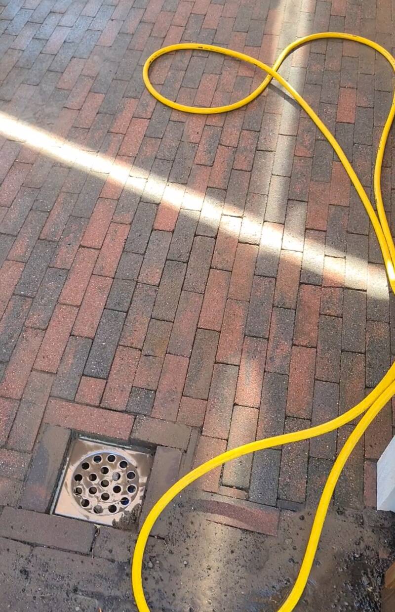 Oprit en tuinmuur schoonspuiten d.m.v. hoge drukspuit. Om alleen al de aanslag en algen vorming tijdig van de voegen en stenen af te spuiten blijft een goed ingezette voeg langer behouden.