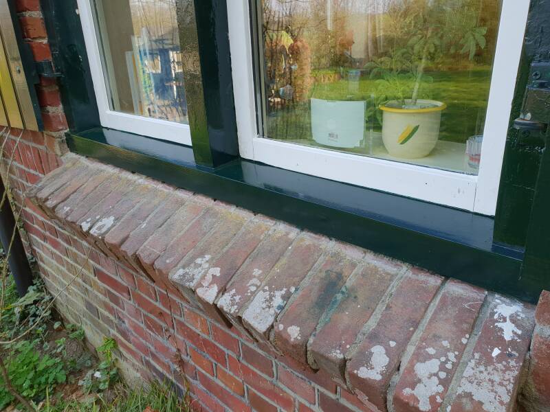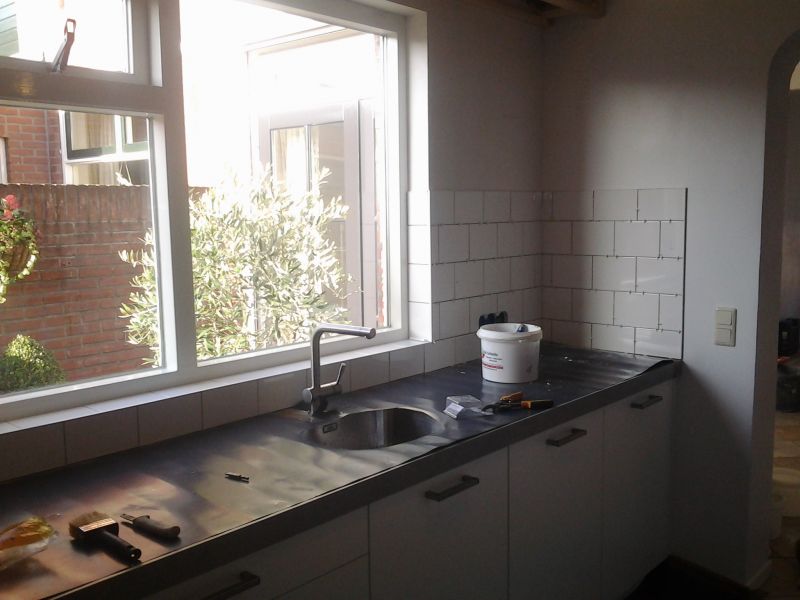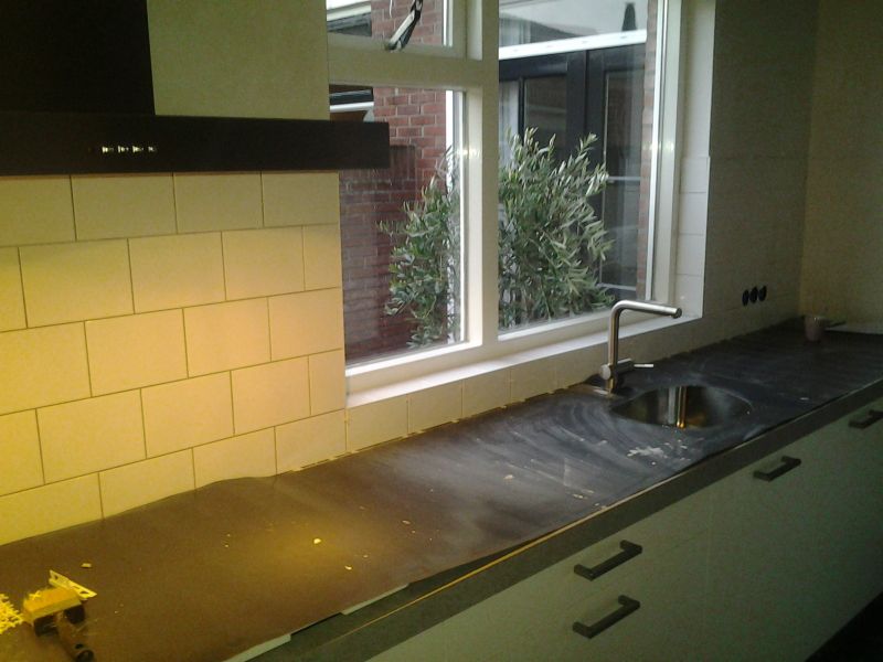Platvol ingevoegd voor een langere levensduur van de voeg. Met donker zand en donkere cement voor een mooie donkergrijze voeg.