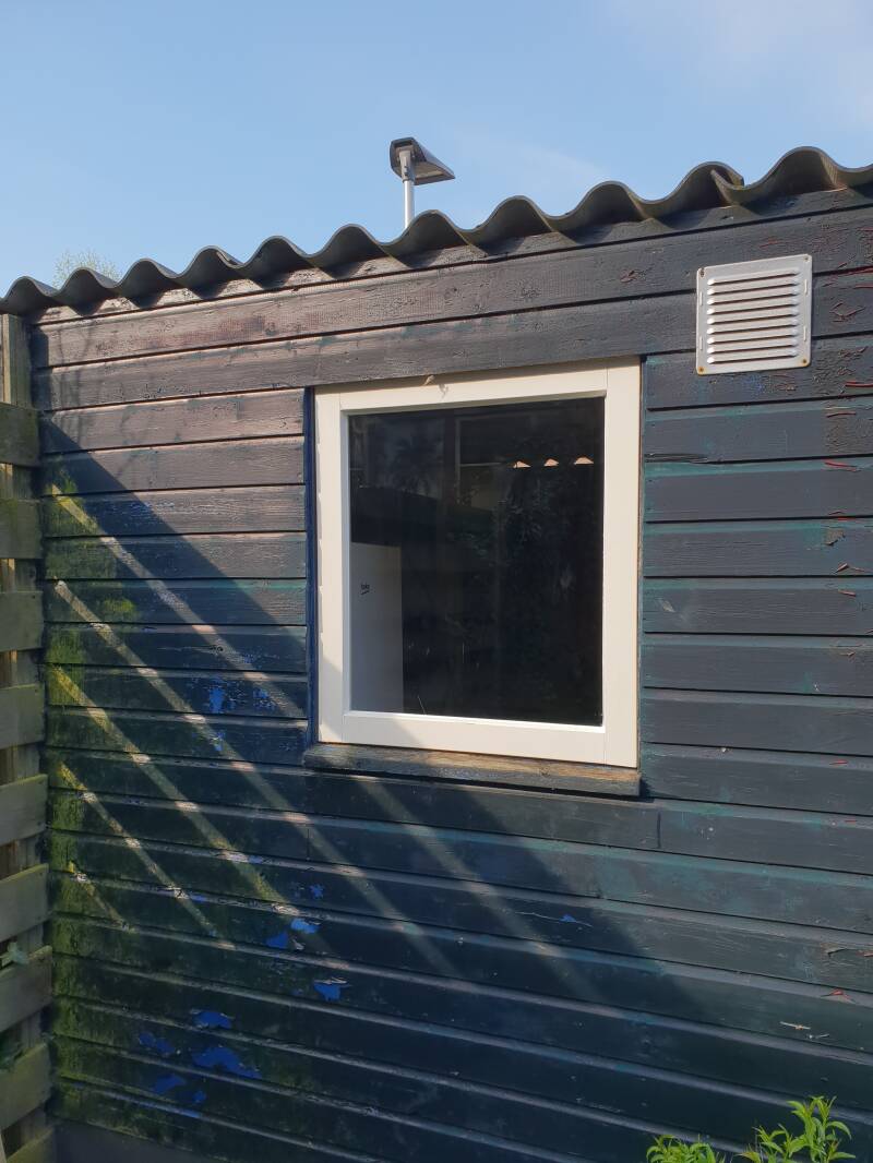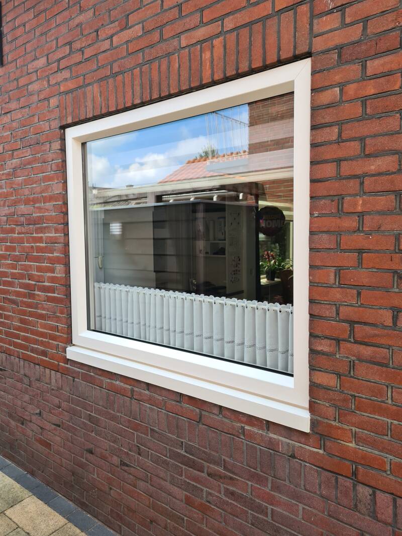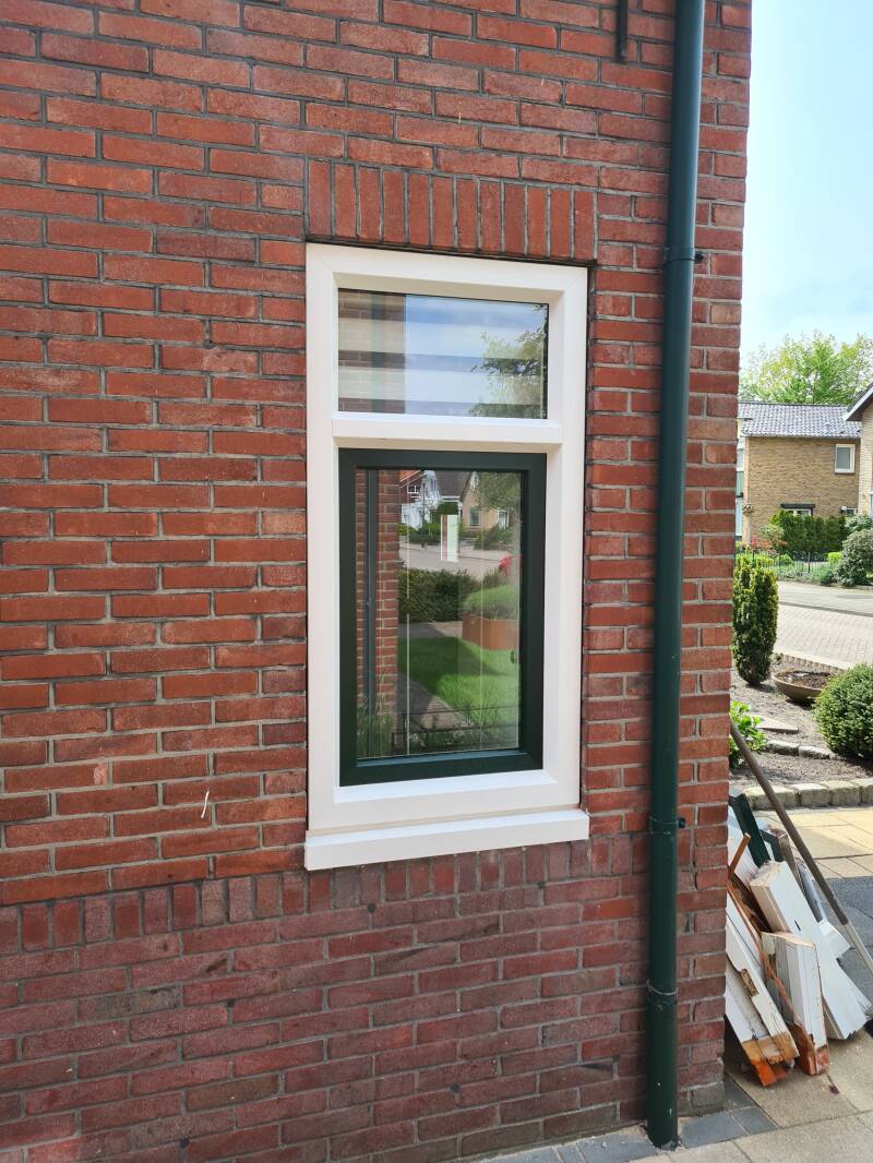 2 kunststof kozijnen met vast glas en ventilatierooster. In Winterswijk aan de Vredenseweg