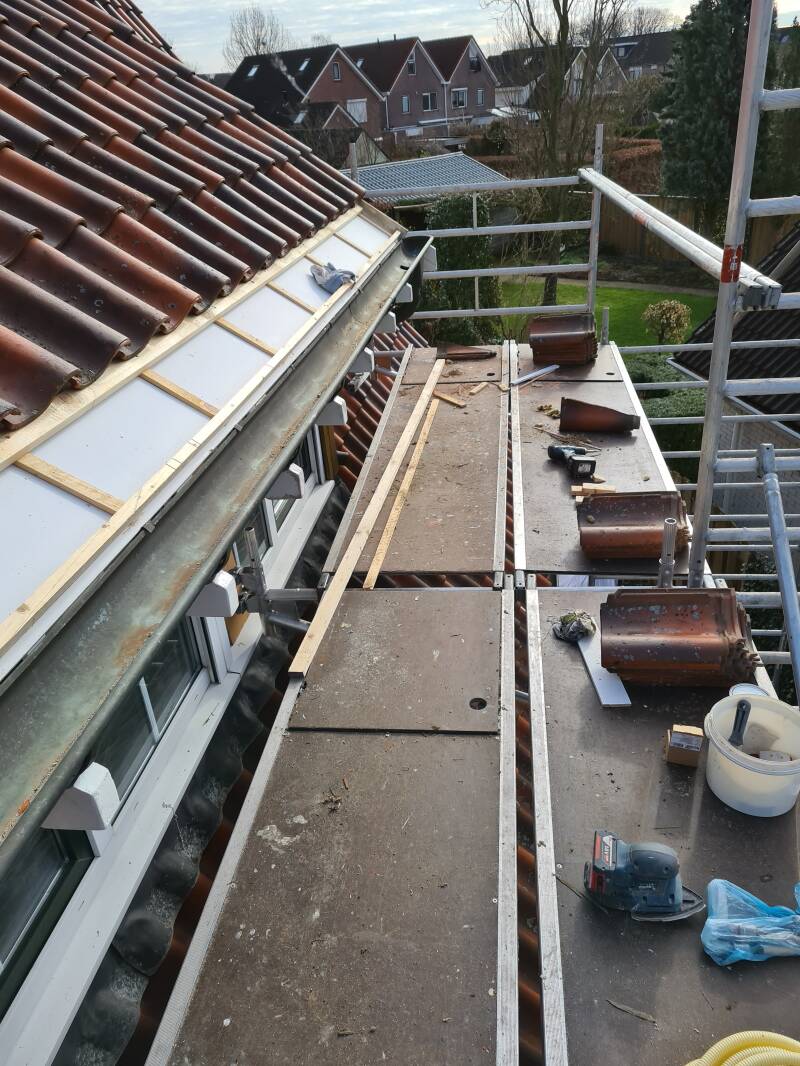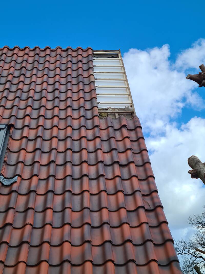Renovatie schoorsteen voegen en lood opnieuw inzetten. In Winterswijk aan de Populierenstraat